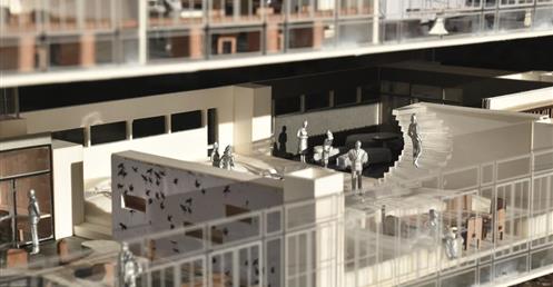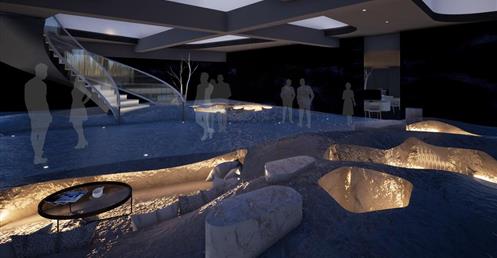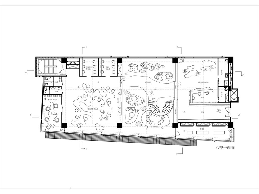 八樓的中心設計了一個有機體型態的空間,提供了寬廣的空間來展示TeamLab的投影技術且與員工、外來賓客等都能產生高度的互動性,願能創造數位藝術與人們之間嶄新的關係性。
