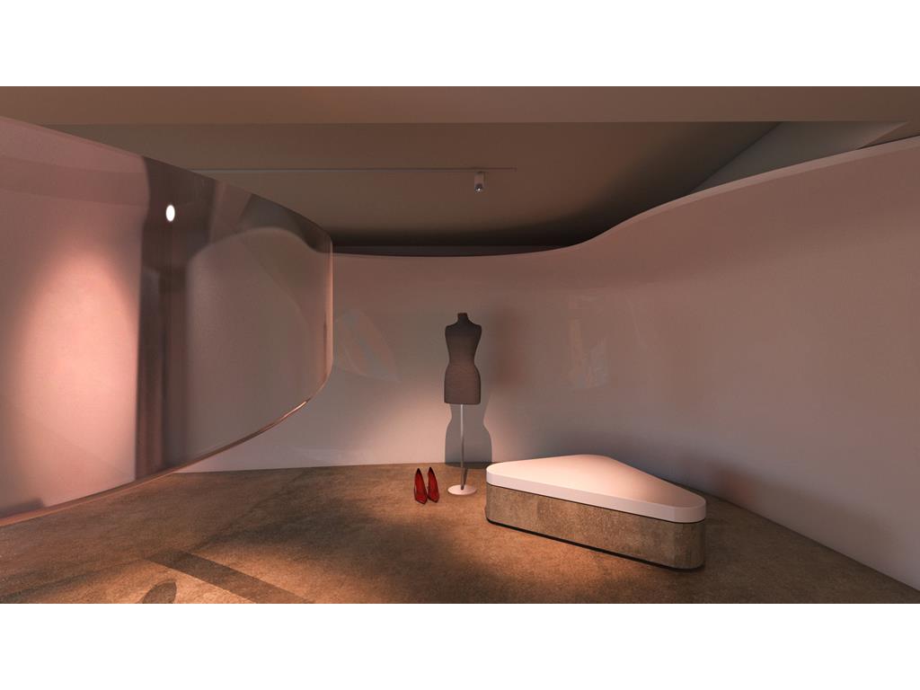 紐約時裝技術學院George simonton教授曾說:「伸展台上展示的設計是一種藝術品的穿戴形式,重點是展示設計師的靈魂和創意,並不是具有實穿的功能性。」 而現今普遍大眾買衣服只是為了型,卻忘了創作者所創作的背後含意,以展場展示行為置入空間中,透過看這個行為,來轉變既有對服飾店的印象,衣服如走秀般在空間呈現,機器的滑軌,懸掛設計師所之代表作,了解設計者背後創作的理念與精神,並賦予設計者創作的作品有自我意識,它可以是有行為性的移動與展示空間燈光氛圍,隨著設計師當季所創作的作品,定期更換。
