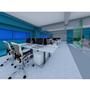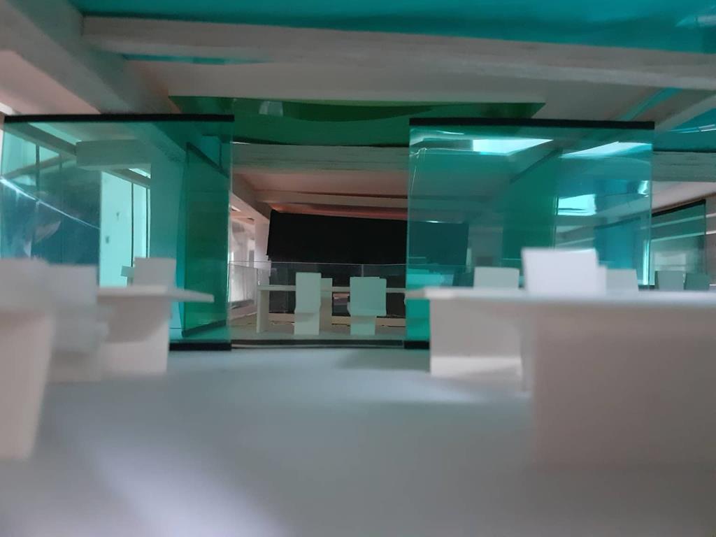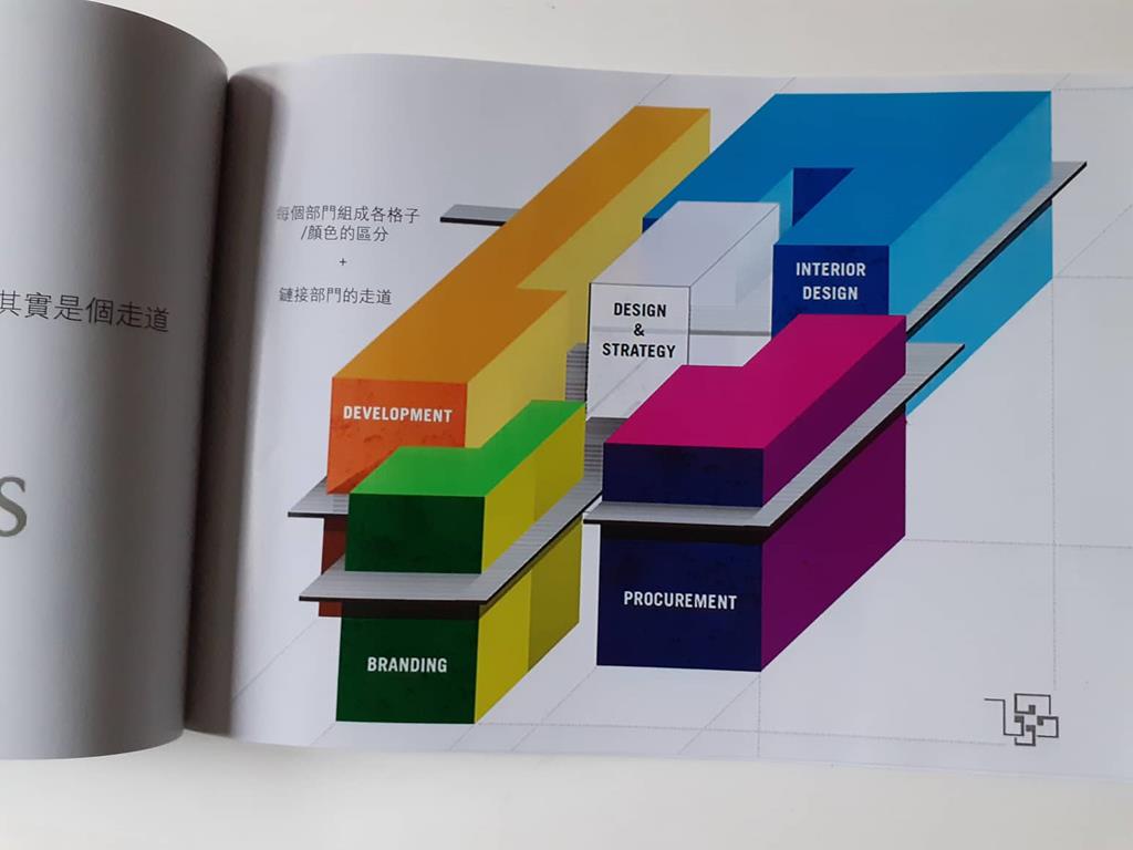 首先依據原Logo的5個顔色的格子,把各個部門也用彩色玻璃圍成格子,玻璃隔間區分領域的同時也保持通透性,玻璃為綠色環保材料,可回收再利用。