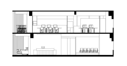此外,在整個空間中的黑盒子是設計重點,爲了凸顯黑盒子我們在它旁邊做了挑空,使它成爲一個獨立的量體。黑盒子的概念是“聚”,空間用途是讓整體員工都能聚到裏面進行交流、娛樂、討論等。另外也明顯能發現的黑色走道是採用原Logo“鏈接”的理念,它分別分佈在8、9樓層的各個部門旁,串聯起每個部門之外也是員工們前往”聚“黑盒子的通道。