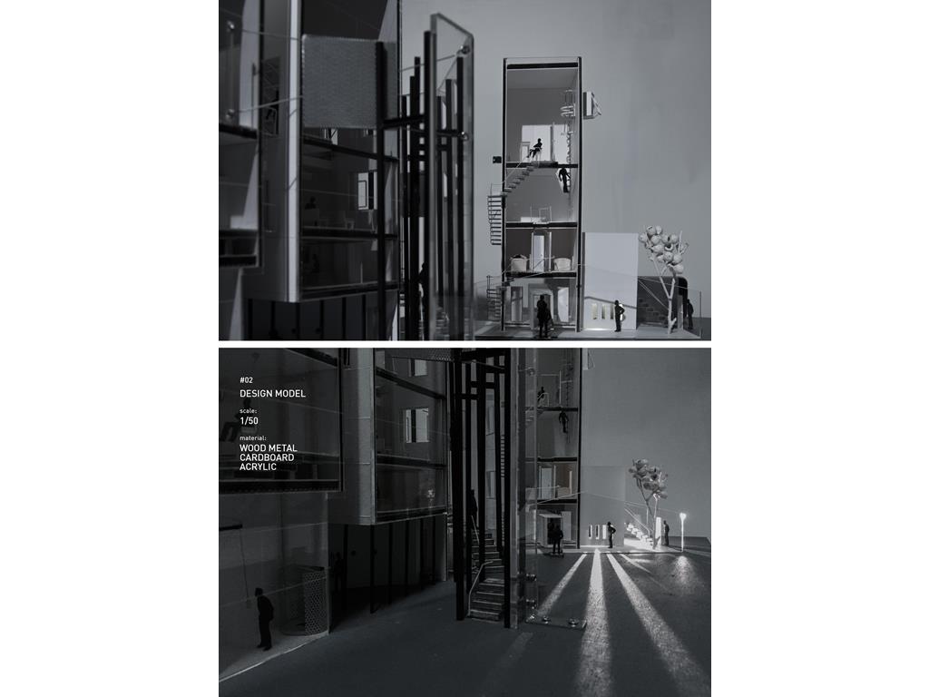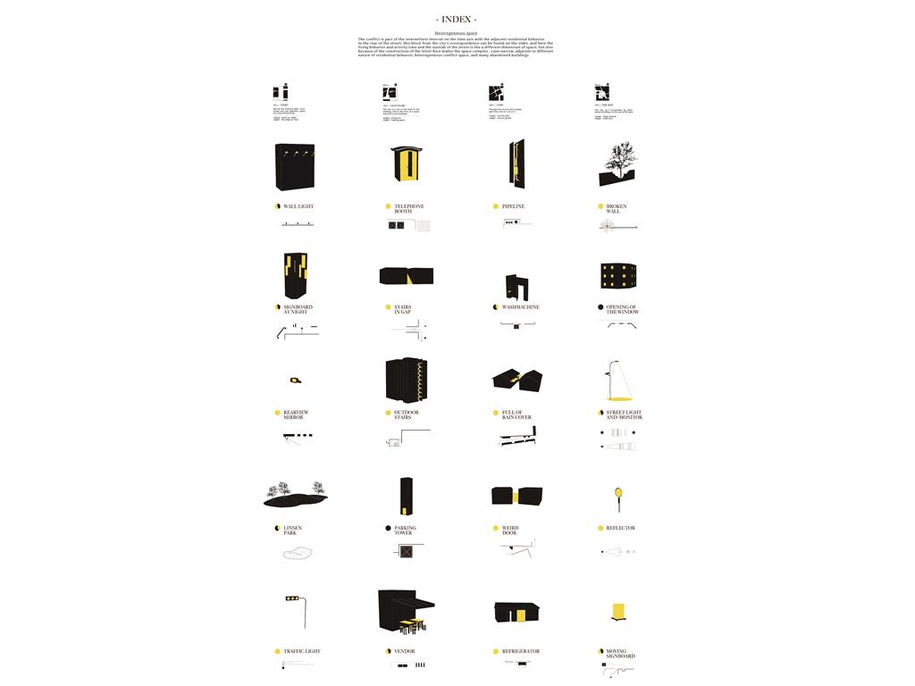 About the statement of dying people talked, you will be affected by subversive ideas whatever you already recognize — “ Time is non-linear. ” Therefore, people, objects, events, spaces should be separated and misplaced, and the relationship of architecture elements should be deconstructed and constructed of different axis of time.