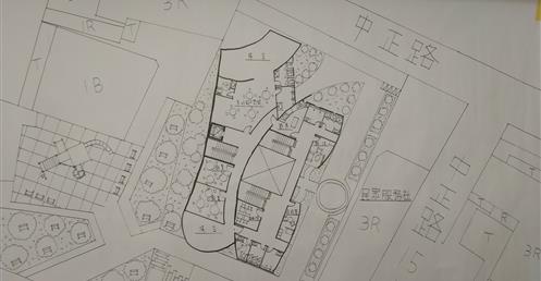此建築分為兩部分的主體,流線型外牆主要屬於主題空間,有高低波浪起伏的屋頂造型主要為行政空間與咖啡廳做一個融合,使經過此社區風貌館的遊客的目光會被吸引到此中心,在咖啡廳外圍有設有一個戶外的廣場與長條的廊道,旁邊種有一整排的樹,可以阻隔噪音亦可增加美觀的效果,和一個圓形水池作為中心點的美觀設施,在行走於廊道的期間也可以看到本館高低起伏的波浪造型設計,觀看建築的美妙之處,就像魚一樣自由自在地穿梭於海洋之中。