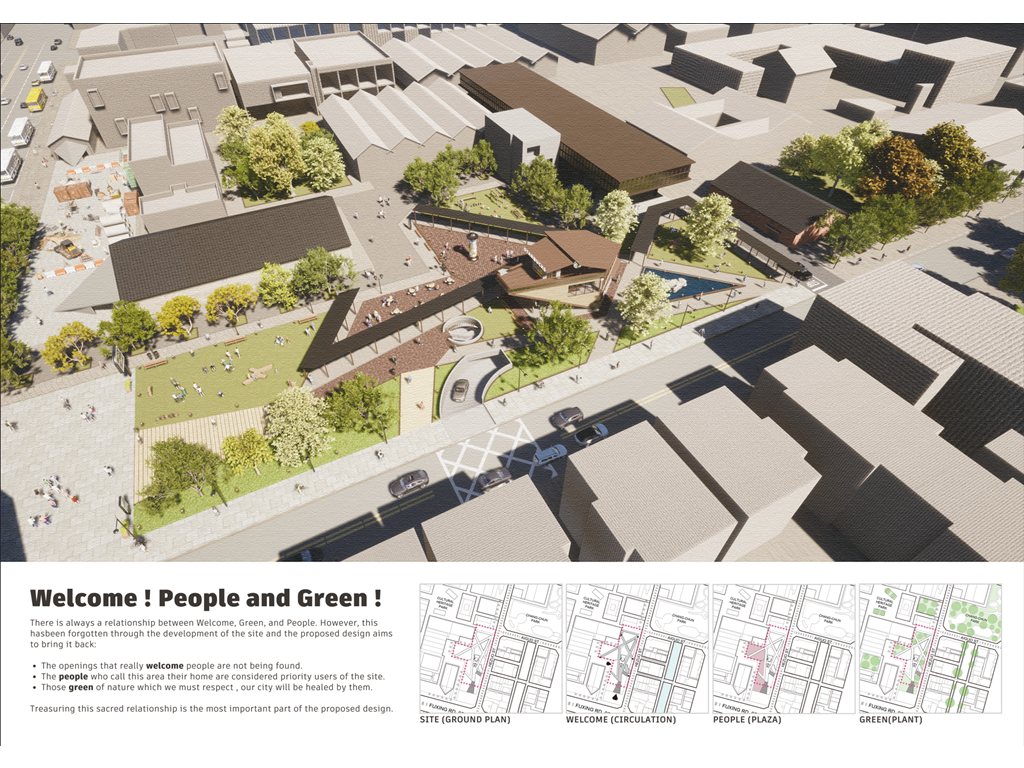Welcome People And Green這並不是設計一開始的主題,從開始設計的真正想法是Feel Season,但Who Feel ?這才是最核心的問題。此時讓我們回到建築設計的原點「人」,以及陪伴著台中文創園區成長的「植物」。或許你可以否認我的觀點,但你不能否認以上這兩者的親密關係,因為他們太重要了!對於本次的基地上的每個鄰居,太重要了!在這個繁雜的都市,太重要了!在這個世界亦是如此。
