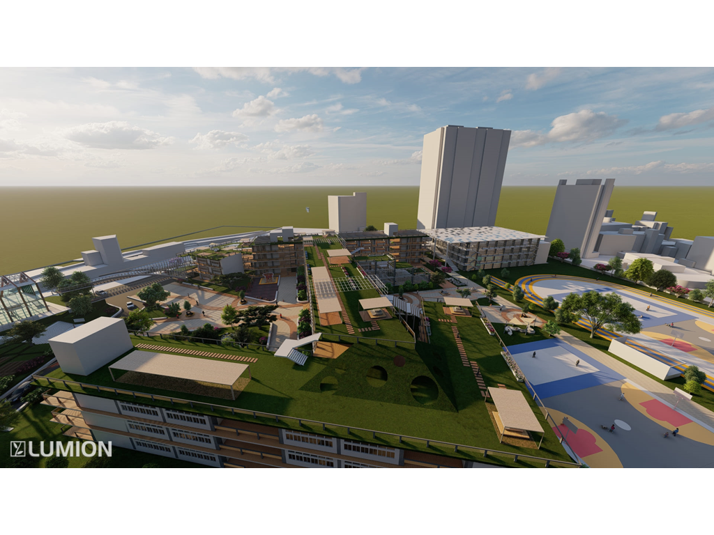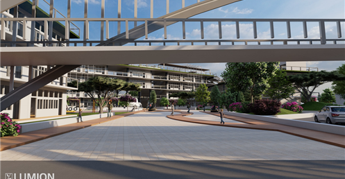 2.校園內部有大型戶外階梯與空中橋實現了全校通達的效果因文山區長期下雨這樣做可以讓學生在不淋雨的狀況下通達溫室/活動中心/教室/學生餐廳/圖書館等區域