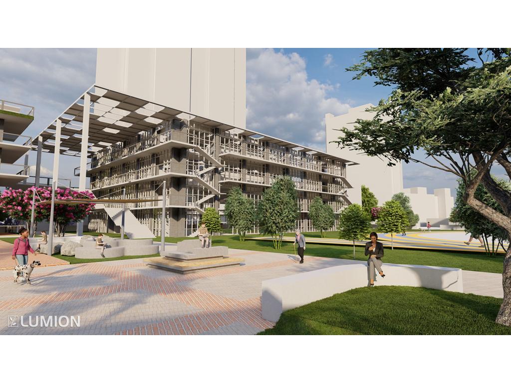 6.圖書館是一棟階梯式的建築也和其他的不同我將三面都開窗這樣是為了視覺的通透感與希望學生可以在更有趣的環境下學習。