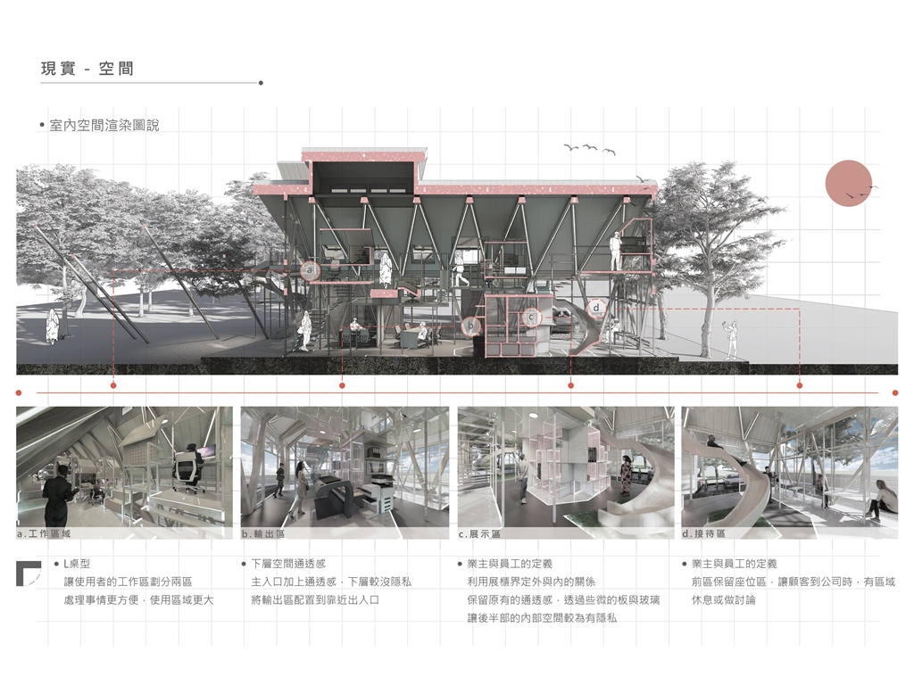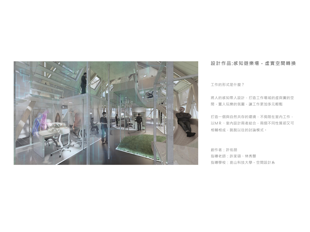 這事件與自然共存的建築,不侷限工作在室內,以MR、室內設計兩者結合,兩者不同性質卻可以相輔相成,跳脫以往的工作討論模式。