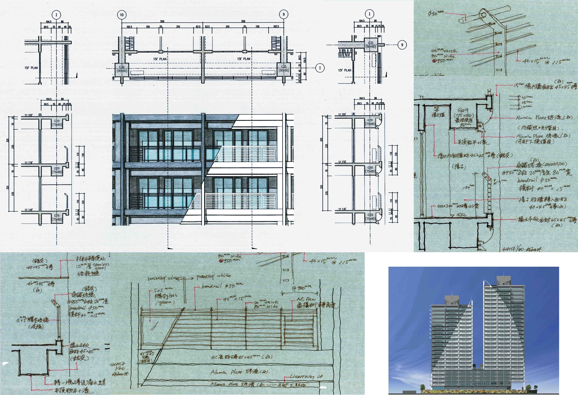 A:佛朗明哥案是事務所很早期的設計,當其在設計施工時我仍在學校就讀尚未畢業,對於這個案子的內容,我便代替事務所全體來回答。這案子坐落在正面面對三芝淺水灣的山坡地上,後側與左右三面環山,在開發者在商言商一定必須將容積用完的狀況,如何降低建築物量體對環境的衝擊便是重要課題。因此平面配置上將前排與後排建築盡可能拉開間距並且互相交錯,各棟建築呼應山勢變化樓層數有高有低,高樓層建築逐層退縮露台,並在立面上做出較多進退面的效果。以上作法,達到讓建築群從外往內看呈現如同自然山勢的高低變化,從內往外看亦兼顧休閒住宅面對海景的機會。