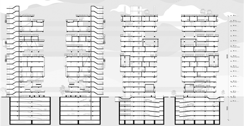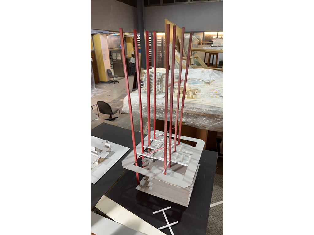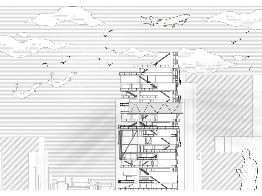 我試圖抱持著開放、靈活、具前瞻性的態度去建構出一處紀錄中山快慢、新舊之間的容器並對當代藝術策展空間提出在地性的疑問......。我利用視角框景與參觀迴路的手法,分別在2F、8F、12F置入高度四公尺以上的透明策展空間,分別對應民國時期的1972年、1957年,以及1950年美軍顧問團抵台時期。企圖利用迴路轉折的手法,從底層的當代文創活動做為起點走回頂層的歷史框景路徑,讓時光倒退回西元1916年代的中山敕使街道,並且打破傳統複合式旅宿空間的住商界限。
