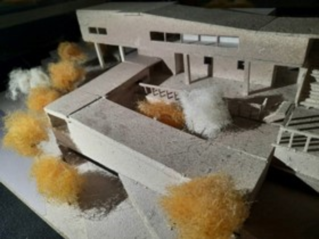 建築的語彙上表達出形隨機能而生,利用動線去規劃空間並且順應基地、順應自然。
