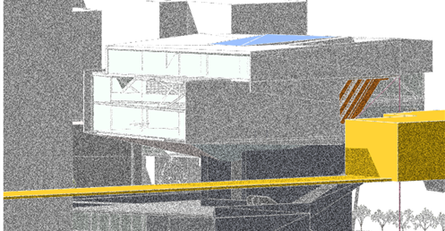 第四個量體是服務盒,作為連結上下的量體之外,特別也是要將停車場的人們帶往自己想去的地方,並快速串聯所有需要的機能,在本次的設計中也作為重要的結構系統使用。