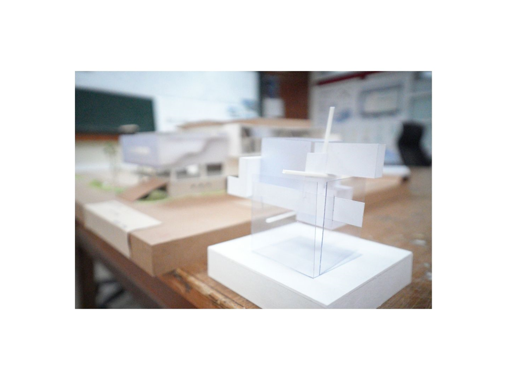 本次設計以改造聯合大學建築系館工作室為址,進行空間、立面的改造。我認為大三是做為建築修煉者的一個分水嶺,歷經兩年的磨練後,將所學內容實踐在設計,提出一個完整的作品的開端,因此有了序論一說。現在將眼光放回自己生活的地方,讓我重新思考自己心目中所追求的建築,究竟是什麼形式、樣貌的,最後得出了:想創作出具有獨特性,與眾不同的建築。因此期許能"解放"自己的想法,提出更創新的建築。概念模的表達上是以數個不同程度開放的量體鑲嵌在一起,呈現出解放是一個循序漸進的過程,並非只有一跟零兩個面向,因此在東向立面能明確看到不同程度開放的空間關係。