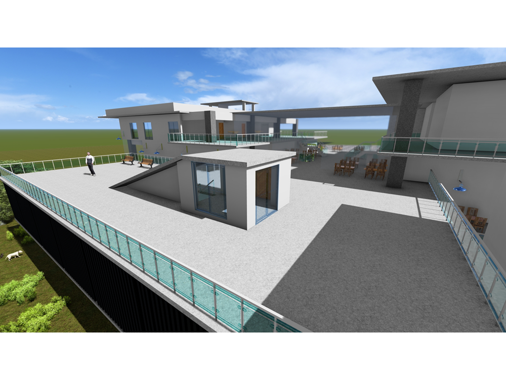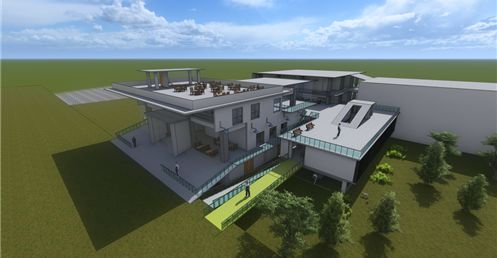 東向延伸的露臺則提供了一個戶外休閒區域,這裡可以供學生散步、休憩,享受自然的美好。這樣的環境不僅促進了健康,還為學生提供了一個舒適的放鬆場所。