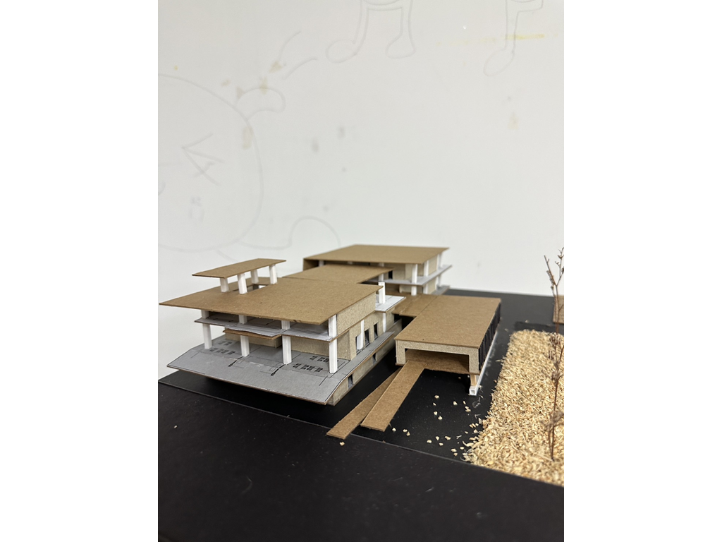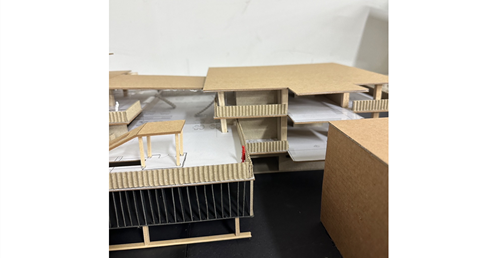 這裡提供了一個小型評圖的區域,促進學生之間的討論和交流。這樣的空間布局有助於促進建築學生之間的合作和學習。