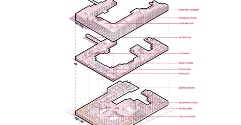 模組化在空間運用與配置上具有無限可能,它們既可以獨立亦可以互相依附,甚至可以堆疊、延展,獨特的模組化空間使我們的設計如同積木般新穎、有趣。從住房單元、小型商店、餐飲、中型零售店甚至地下停車場,這一切都將透過框架在我們的設計中實現。