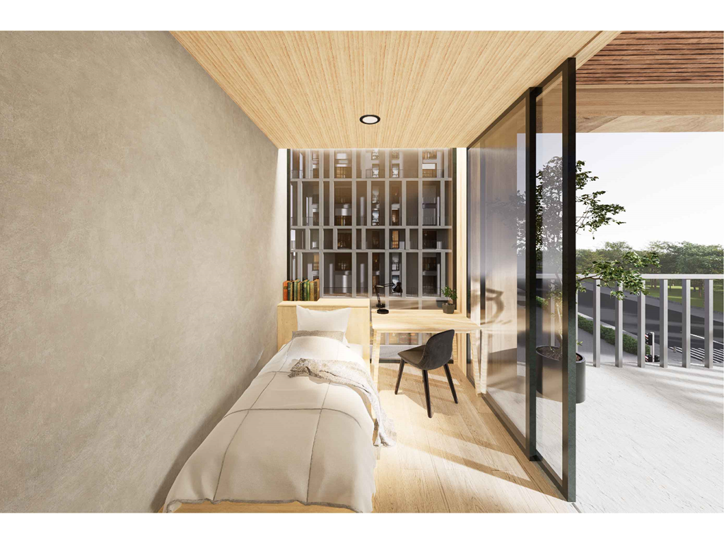 框架不僅有助於我們設計不同的房型,同時更與加蓋區互相配合,我們在框架中以留白來提供居住者依照自身空間需求與喜好自由安排空間,無論是夫妻增加一個臥房來迎接新生命,抑或是SOHO族增建工作室或書房,這些加蓋區無疑為社宅增添了生命與活力。
