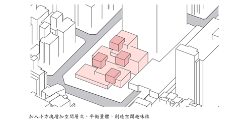 3. 將量體錯開,讓量體更有律動,也增加立面表面積