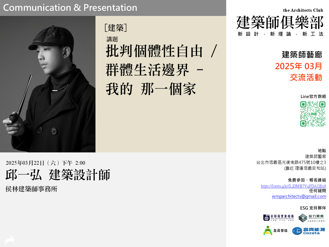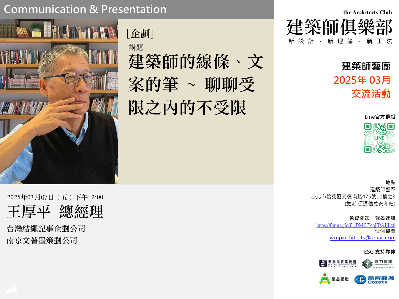 講題:建築師的線條、文案的筆- 聊聊受限之內的不受限