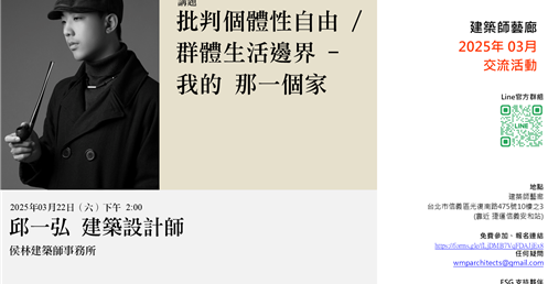 📌 歡迎加入「建築師藝廊」官方Line群組, 方便接收活動訊息