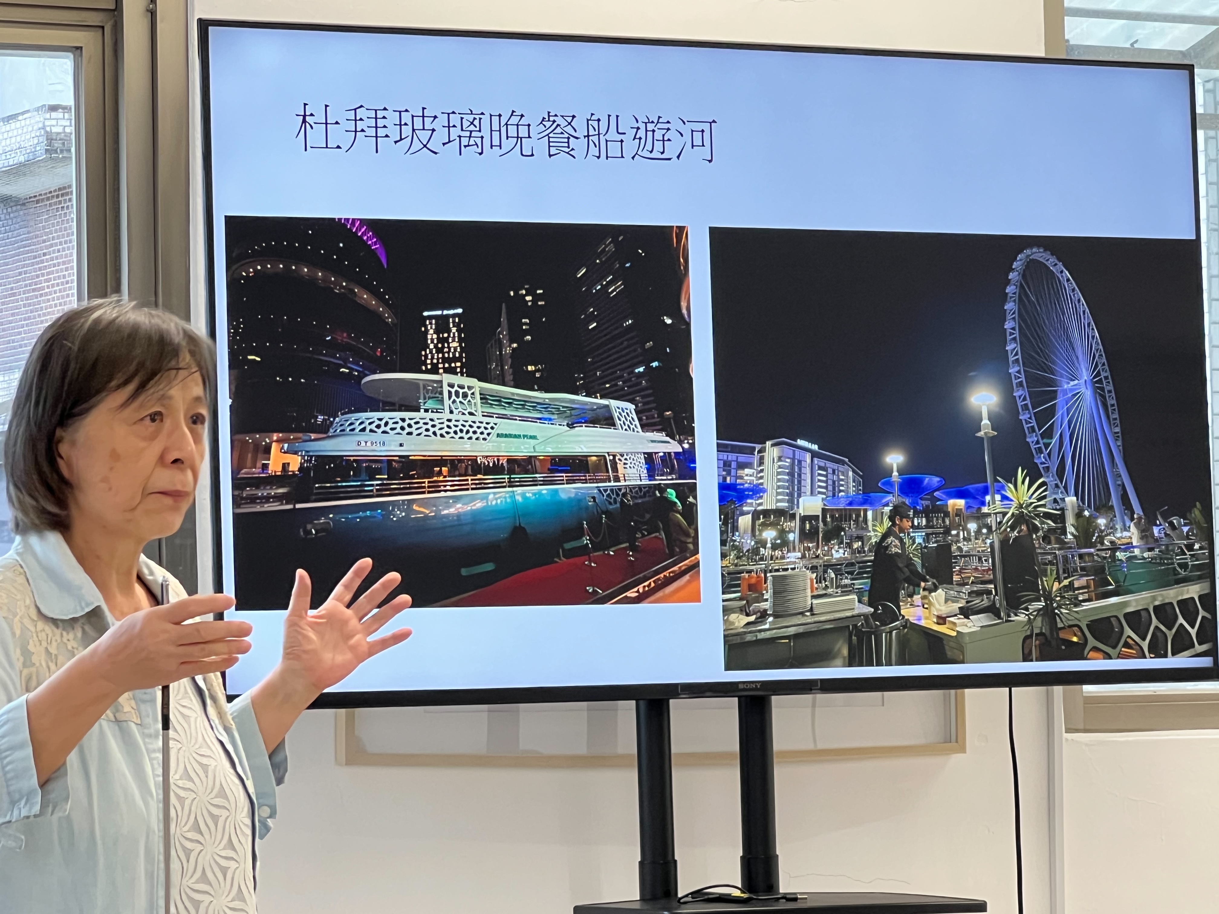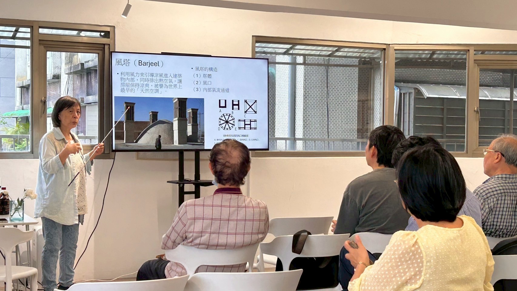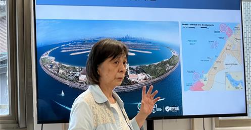 而「世博城」則是結合互動、智慧、永續與環保理念的未來城市樣板,未來預計可容納35,000位居民並創造40,000個就業機會。此外,她也介紹傳統阿拉伯風塔「Barjeel」的建築原理——利用高聳的混凝土或磚造構造,透過自然對流調節氣候,展現當地先民面對炎熱環境的智慧。