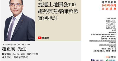 講題:捷運土地開發TOD趨勢與建築師角色實例探討