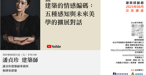 講題:建築的情感編碼:五種感知與未來美學的擴展對話